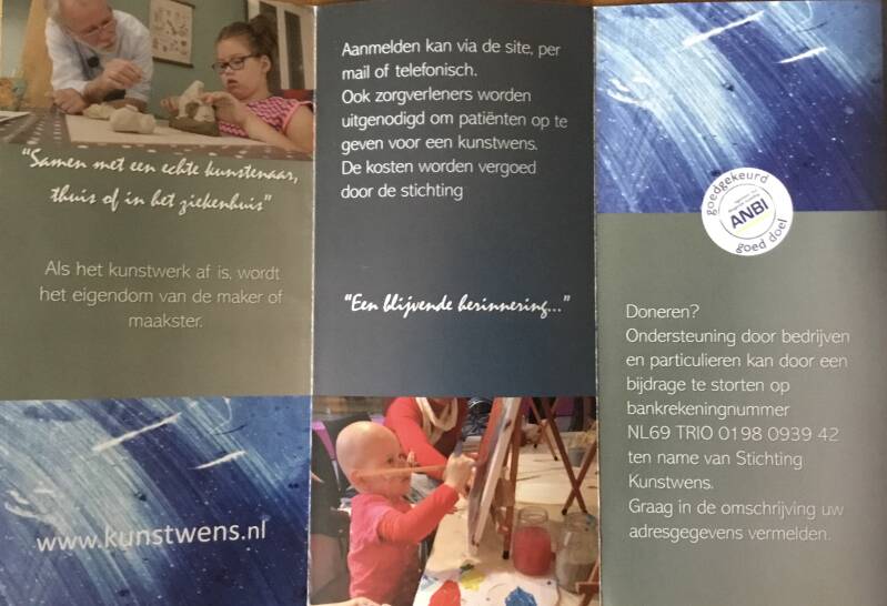 Op zoek naar zinvol en leuk vrijwilligerswerk? Denk eens aan de stichting Kunstwens. We zoeken nog mensen die regio’s kunnen en willen coördineren. Een wens vrager koppelen aan de uitvoerende kunstenaar. Bel gerust voor meer informatie of kijk eens op de site www.Kunstwens.nl
